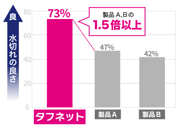 (水切れ量)÷(吸水量)で各製品の水切れ率を比較。